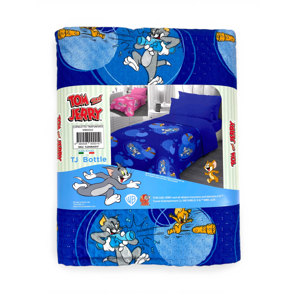 Ein großartiger Klassiker fürs Kinderzimmer: Die leichte, gesteppte Bettdecke im Tom-and-Jerry-Muster ( Warner Bros / WB World) auf blauer Basis mit "Bubbles"-Muster ist perfekt, um das Bett sofort ordentlich und spaßig zu machen. Ideal im Frühling/Sommer und in der mittleren Jahreszeit; Im Winter lässt sich sie leicht mit einer Decke kombinieren.