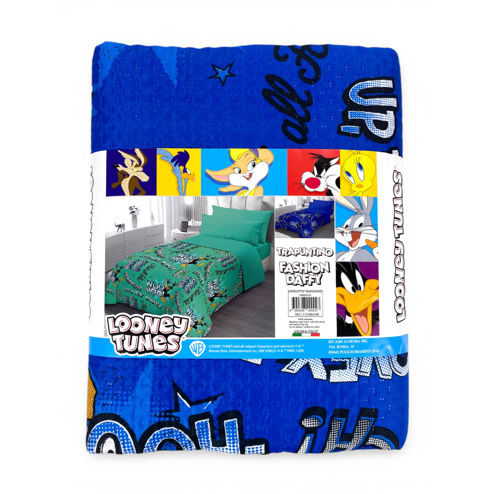 Copriletto Singolo Bambini 170x250 Daffy Duck Blu – Trapuntino Leggero 80 g/m² in Microfibra, Made in Italy