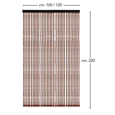 The brown curtain in wooden beads is a refined piece of furniture made by hand, with 100% natural bamboo. Ideal for indoor use as a room divider, room divider or door cover. Includes a sturdy black rod for mounting.
