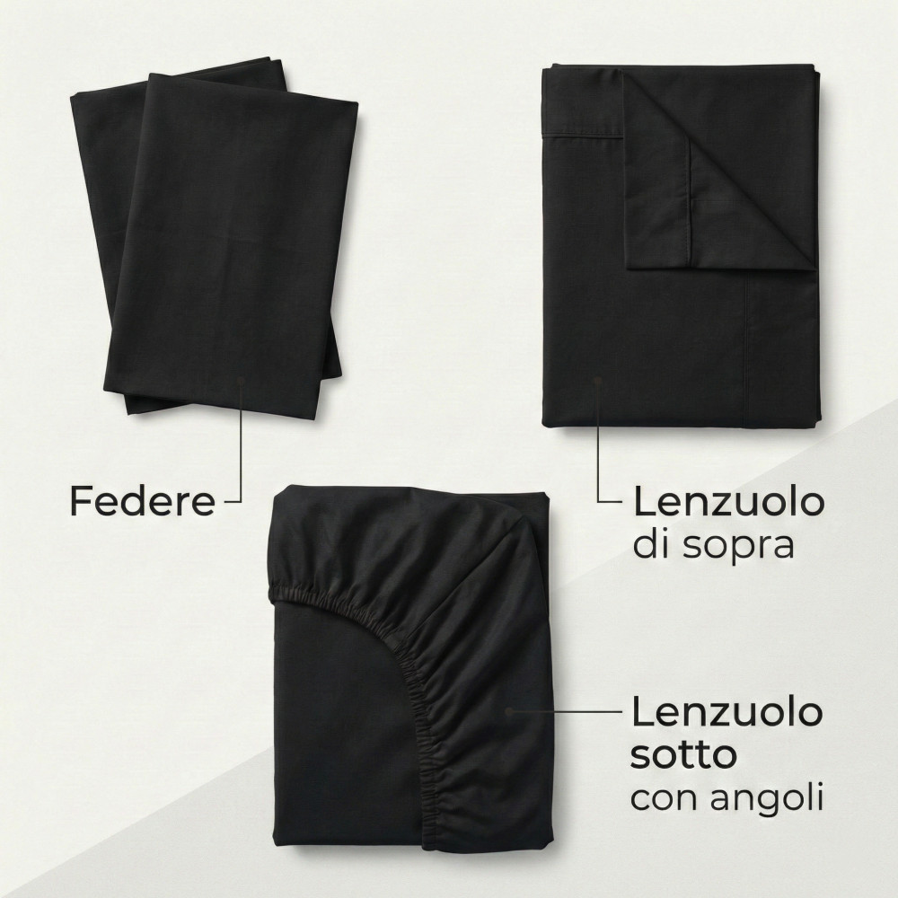 SHEET SET STRONG SHEETS solid color BLACK pure COTTON Made in Italy