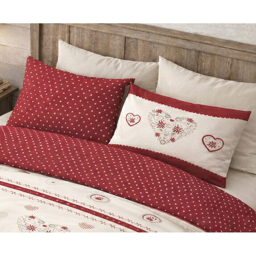 Haz la habitación más cálida y acogedora con la funda edredón Cuore Stella Alpina Red, un juego de algodón 100% natural diseñado para ofrecer suavidad, comodidad y transpirabilidad durante toda la temporada fría.