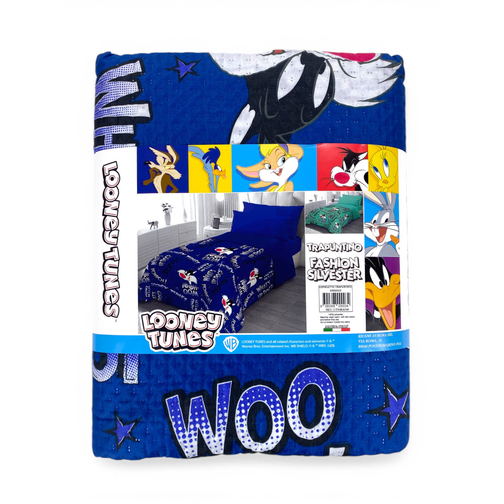 Un classique intemporel pour la chambre de bébé : la couverture légère matelassée en motif Sylvester Cat (univers Looney Tunes) sur une base bleue rend le lit immédiatement propre et super amusant. Idéal au printemps/été et en milieu de saison ; En hiver, il se combine facilement avec une couverture.