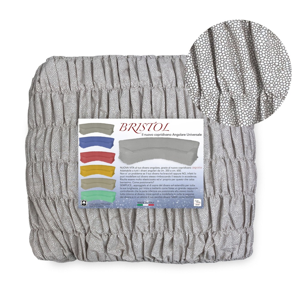 NUOVO copridivano BRISTOL angolare universale estensibile da cm. 350 a cm. 650 in una bella fantasia sul tinta unita.