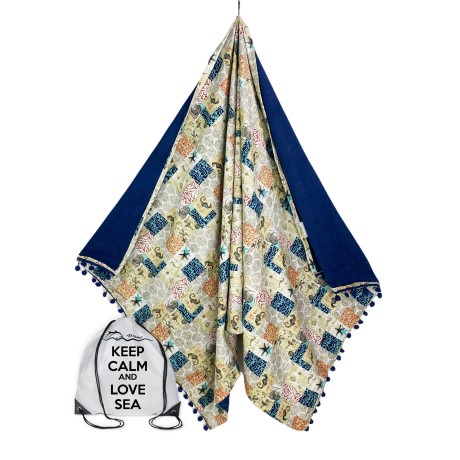 TELO MARE fouta TARTARUGHE misura GRANDE con zaino Spiaggia KEEP CALM CM.100X200