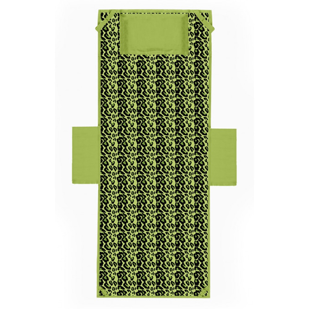Questo telo mare da lettino in morbida microfibra è l'ideale per chi intende crogiolarsi al sole, subito pronto, si monta sul lettino in un attimo. Stampato in stile animalier nel colore verde, davvero cool !