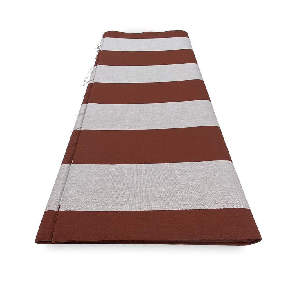 Tessuto tenda sole " Torino " venduta a metro realizzata in tessuto indistruttibile di acrilico ideale per tende sole o per ricostruire gazzebi e verande. Proposta nel rigone blu, rigone verde, rigone marrone, rigone azzurro e rigone beige. Disegno classico a righe larghe colore su colore.