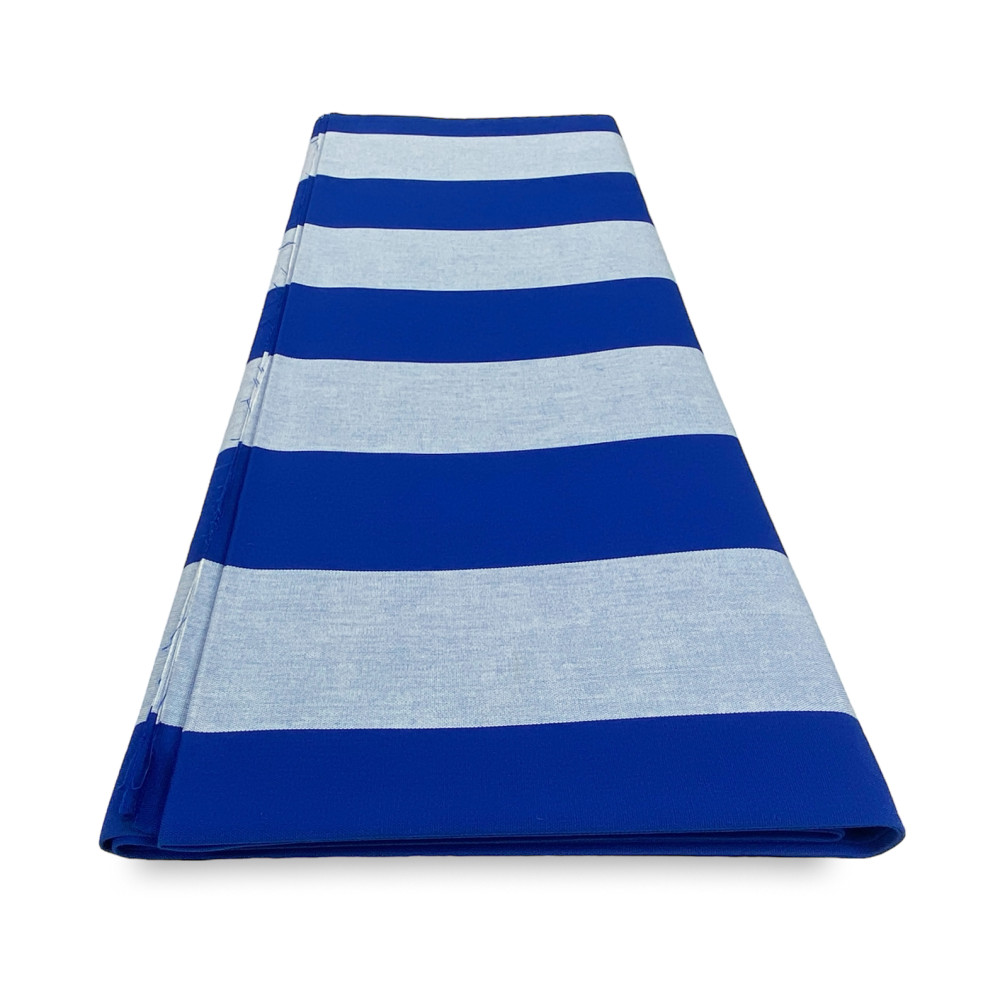 Tessuto tenda sole " Torino " venduta a metro realizzata in tessuto indistruttibile di acrilico ideale per tende sole o per ricostruire gazzebi e verande. Proposta nel rigone blu, rigone verde, rigone marrone, rigone azzurro e rigone beige. Disegno classico a righe larghe colore su colore.